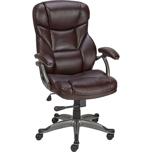 Staples Leather Office Chair : Staples Giuseppe Bonded Leather Executive Office Chair ... - Here at staples our assorted office.. Staples burlston luxura managers chair overview. If you're looking to buy a leather office chair you need to consider a few things before your order executive chairs online. Leather office chairs look sleek and imposing, perfect for asserting your position and sitting down comfortably for hours. The chair is comfortable sitting on for long periods, although i would have preferred a slightly more of an angle on the back rest, more than the upright position, but that's just my. Executive office chair with a swivel seat for maximum workspace use.